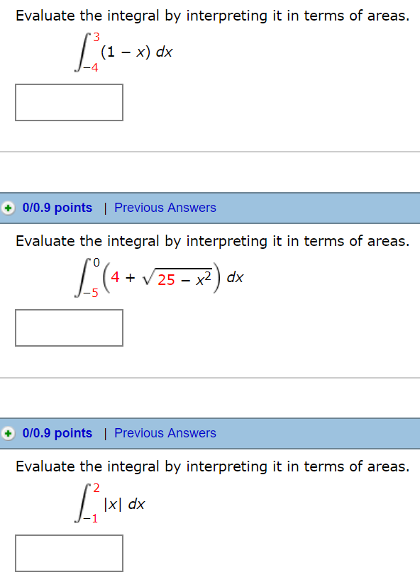 0 3 sqrt1 x2 dx 1 calc Evaluate 𝑥34𝑥2𝑑𝑥 by writing it as a sum of two integrals and interpreting one of those integrals in terms of an area. Evaluate the integral by interpreting it in terms of areas. Integral 0 to 9 13 -2dx.